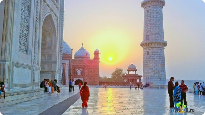 Дворец Тадж-Махал, возведенный еще в XVI веке. История этого чуда света повествует, что император Шах-Джахан возвел его в честь умершей жены в знак любви и уважения. В качестве строительного материала для возведения дворца использовался мрамор. На стенах дворца можно увидеть цитаты из священного Корана.