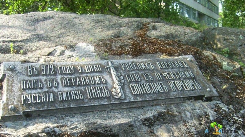 Памятник заслуживает того, чтобы на него посмотреть, а заодно и послушать историю гибели Святослава.