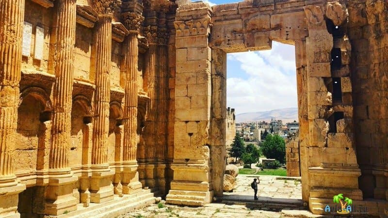 В центральной части Баальбека возвышается огромный и некогда величественный храм, посвящённый богу виноделия Вакху. Он покоится на прямоугольном массивном цоколе, достигающим 6 м в высоту.