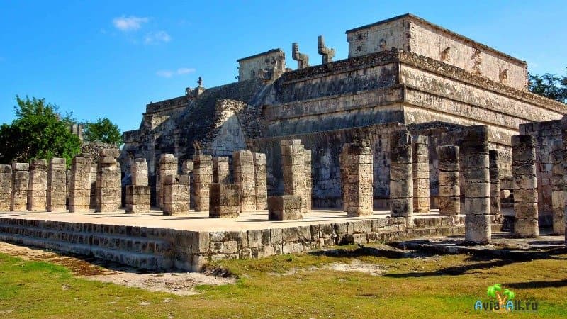 С противоположной стороны пирамиды Кукулькан стоит Храм Воинов. Главной особенностью этого Храма является то, что он окружён тысячью колоннами, которые символизировали армию.