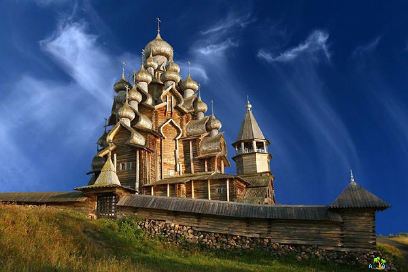 Древнерусский город Кижи — оплот России в Заонежье. Это ансамбль из трех построек, являющихся представителями древнерусской деревянной архитектуры и зодчества. В Кижи расположены две старинные деревянные церкви XVIII века и небольшая восьмиугольная колокольня. В сочетании с изумительным пейзажем Онежского озера и окружающей природой, эти строения не дают отвести взгляд.