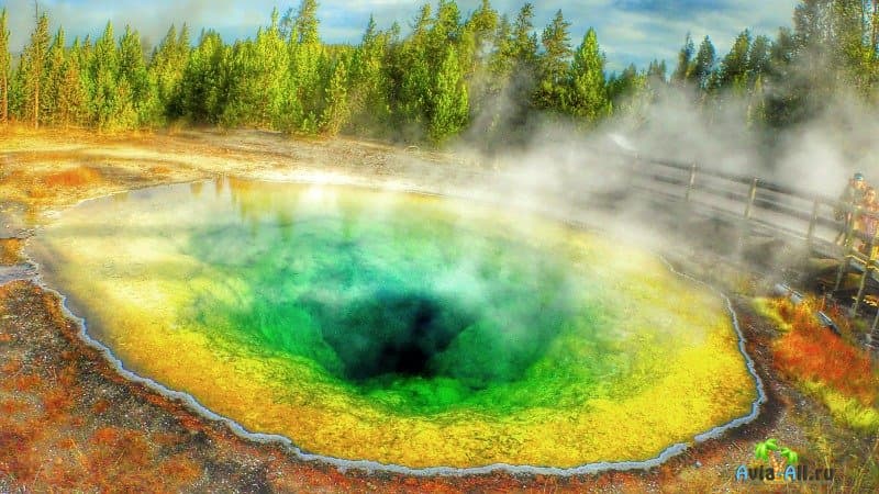 Но главной достопримечательностью Йеллоустоунского парка является около 300 гейзеров, самых мощных в мире. Колоссальную силу гейзеров Йеллоунстоуна трудно представить. Некоторые из них за один цикл выбрасывают почти 5тысяч тонн воды на 100-метровую высоту.