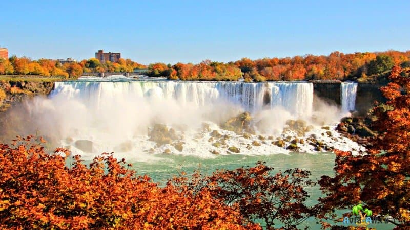 Справедливости ради не стоит забывать о таком чуде природы, как всемирно известный Ниагарский водопад (точнее сказать, комплекс, состоящий из трех водопадов), который хорош круглый год. Но осенью это воистину незабываемое зрелище: калейдоскоп сверкающей всевозможными оттенками водяной пыли на фоне разноцветной листвы и осенней голубизны неба. Если не подведет погода, то Ниагара похвалится удивительными радугами, которых вы не увидите больше нигде.