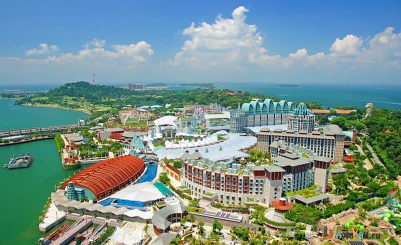 Остров и расположен недалеко от Сингапура и добраться до него можно на монорельсовом поезде или по канатной дороге. Здесь также есть несколько отелей, где туристы смогут заночевать или пожить несколько дней.