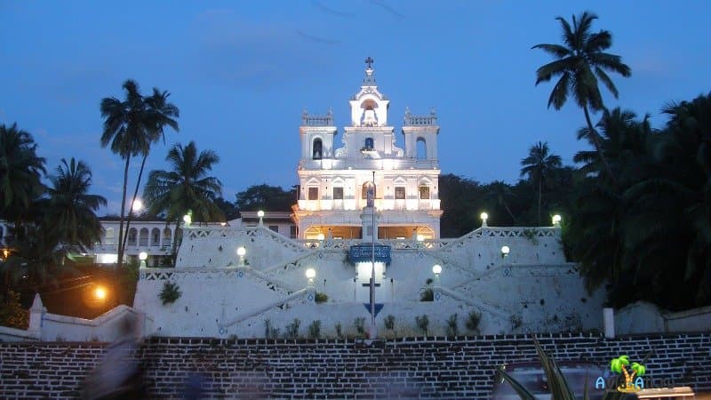 Если начинать осмотр, то лучше с этого места. Великолепная церковь, которая сверкает своей белизной (носит имя Девы Марии и непорочного зачатия). Трудно найти столь величественное здание даже в Европе. А в Индии, с ведущей к ней много уровневой лестницей, окрашенной в белый цвет и окруженная пышной зеленью, она заставляет душу трепетать.