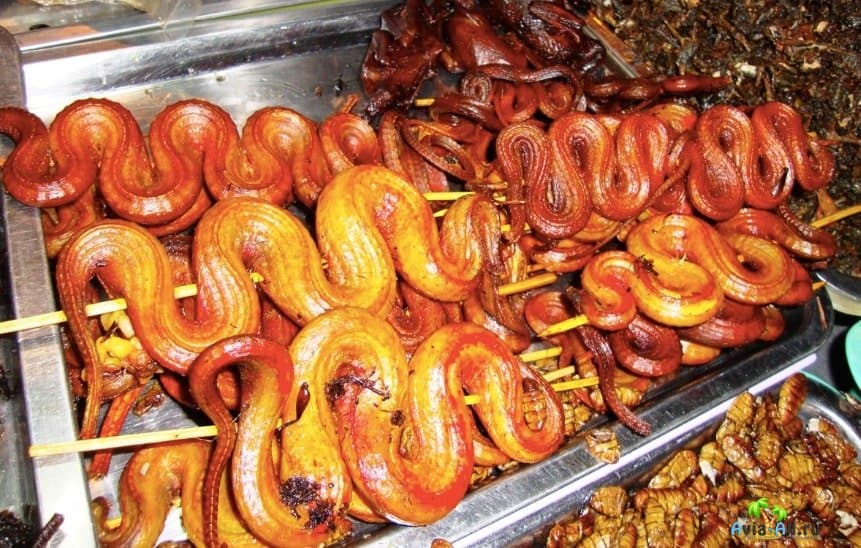 Изюминкой для некоторых туристов может послужить широкий выбор насекомых и пресмыкающихся. Причём здесь это простое и популярное блюдо и среди обычных кхмеров, а не в качестве туристического развлечения. Так что даже к пиву могут принести какие-либо сушёные, вяленные или копчёные кусочки.