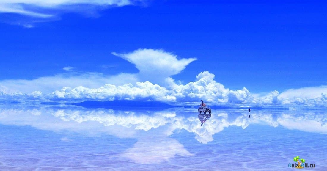 В Боливии расположен самый большой по площади солончак, где сегодня добывают соль. Однако после проливных дожей гладь солончака, покрытая прозрачной водой, превращается в зеркальную поверхность, в которой отображается небосвод и все, что есть в округе. Находясь, в это мгновение на солончаке, не понимаешь, в реальности ли ты или это уже другой мир.