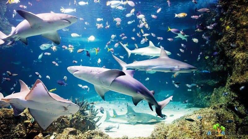 В аквариуме есть несколько секций. Здесь собрано колоссальное разнообразие морских обитателей. Можно увидеть акул, которые достигают по весу до 300 кг., снуют морские котики и львы, рыбы-гитары и множество других рыб.