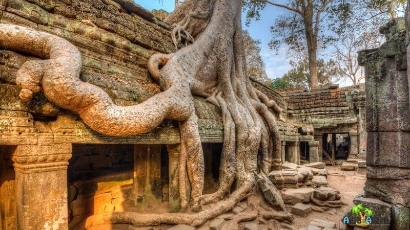 В сердце камбоджийских джунглей находится еще один волшебный храмовый комплекс, относящийся к кхмерской империи — Та Пром. Храм был построен в XII и XIII веках как буддийский монастырь, который был основан на мудрости и знаниях и до сих пор широко известен своими прекрасными деревьями-душителями, которые обвили камни храма.