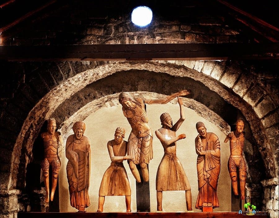 Фигуры из дерева были обнаружены и объявлены в 1907 году. Они изображают Христа, Jos de Arimathea, Nicodemo, двух воров и Деву Марию с Иоанном Крестителем. Памятники выполнены из дерева lamo, а их наряды соответствуют традиционным стилям этих персонажей. Данные скульптуры относятся к моменту большого расцвета воображения, которое началось в Каталонии в XII веке и достигло эпохи готики.