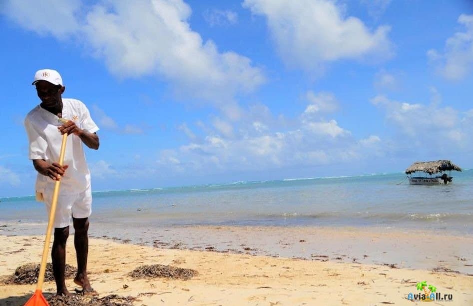 Водоросли атакуют курорт Пунта-Кана ежегодно июле и августе Больше всего достается красивым и популярному пляжу Баваро и Кабеса де Торо. Бывает, что растительности, приплывшей с моря на пляжах очень много, однако туристам это не мешает и никак не отталкивает, ведь частные пляжи всегда убирают, чтобы было красиво и комфортно. Для этого, сотрудники отеля с утра начинают убирать техникой береговую линию пляжа с помощью профессиональной техники и вручную.