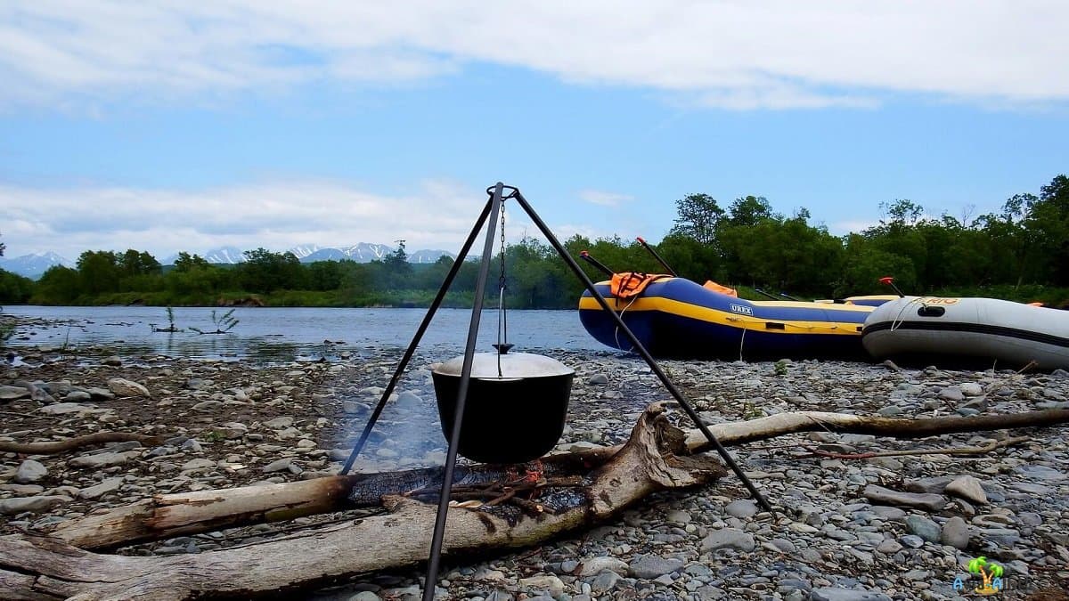Рыбу, идущую на нерест, ловят здесь же на берегу реки на удочки. Через 10 минут была поймана нерка килограмма на два. Потом еще одна. На костре у реки получается самая вкусная уха на свете. После небольшого отдыха туристы разгружают плоты, упаковывают вещи в рюкзаки. По рации вызвали транспорт. Сейчас он всех заберет и повезет в город.